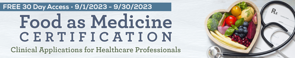 I’m so excited that a master class with certification in “food as medicine” is being offered for FREE. The only cost would be to obtain continuing education credits if you’re a professional needing this for licensure.